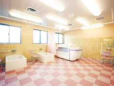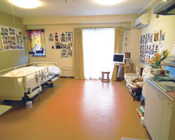 3階建て建物の2・3階部分を占める住宅型有料老人ホームです。全30室の居室はすべてバリアフリー設計の完全個室ですので、ナースコールでスタッフを呼ぶことが出来る安心感と共に、プライベートな時間を満喫できます。どのお部屋にもトイレと洗面台、ミニキッチンが備えつけられています。ユニットバス付のお部屋や、ご夫婦で入居できる広いお部屋など、生活スタイルに合ったタイプのお部屋をお選びください。共用浴室は、手すりや安定感のあるバスチェアの設置で安全性が高められた個浴室があるほか、1階併設デイサービス内の介護浴室をご利用いただけます。ミスト浴もありますので、介護度が高い方も安全に入浴を楽しめます。共有スペースにはダイニングセットが置かれていますので、お食事や歓談など、気軽にお寛ぎいただけます。