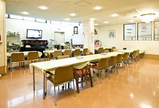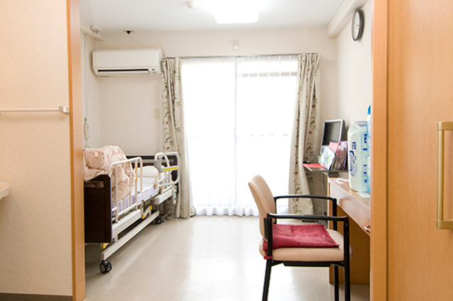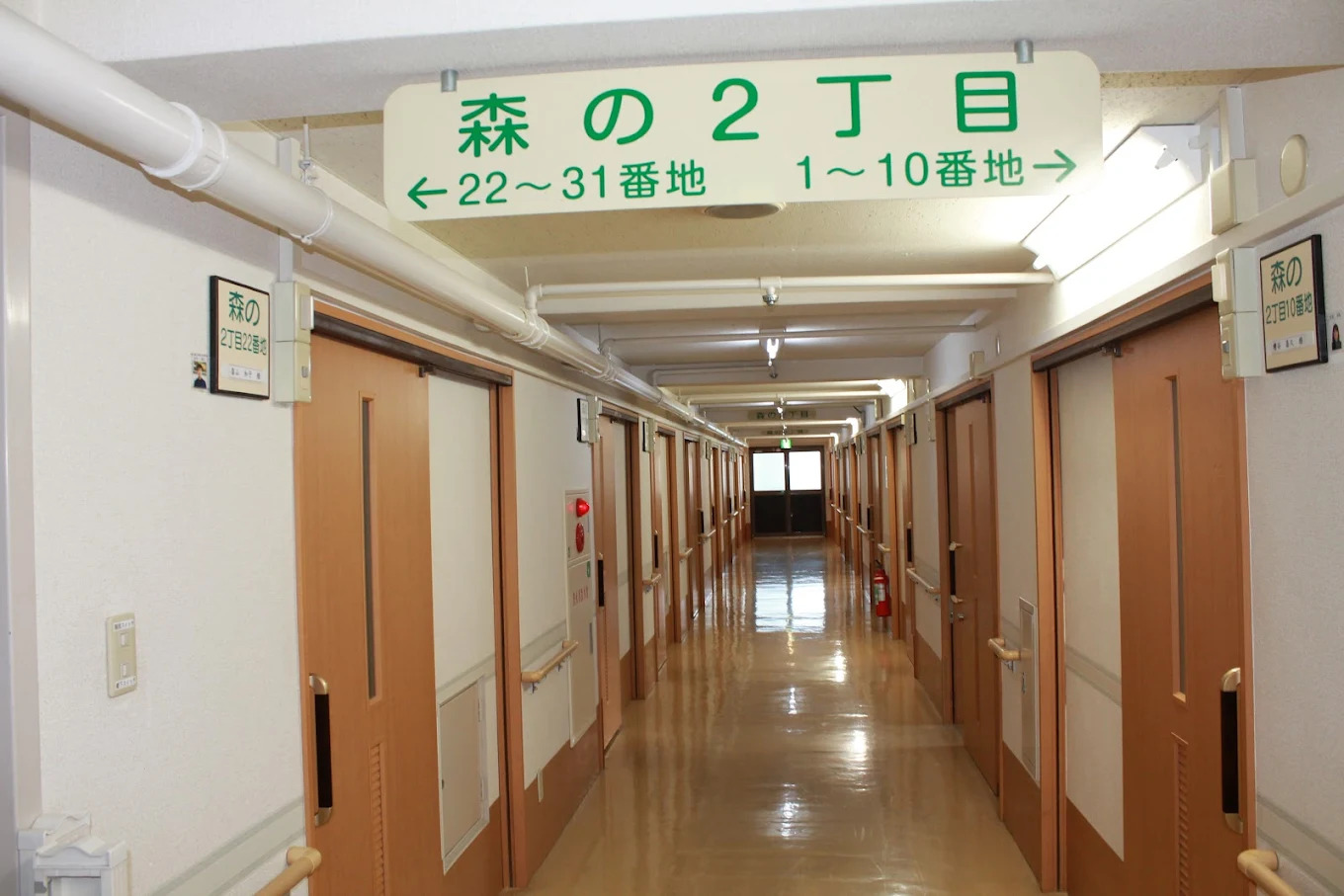 みどりが豊かな環境に施設はあります。居室数は全83室、そのうち2室は2人部屋となっていますので、ご兄弟やお夫婦での入居も可能です。居室内はバリアフリー設計で足元に不安がある方も安心してお過ごしいただける住空間となっています。ナースコールはもちろんのこと、寝具付きの介護ベッド、温水洗浄機能付きトイレ、エアコンなどの設備が備えられています。共用部には食事やリハビリで活用されているリビングルーム、お身体状態に合わせてご入浴いただけるよう個浴室・大浴場・特殊浴室が完備されています。