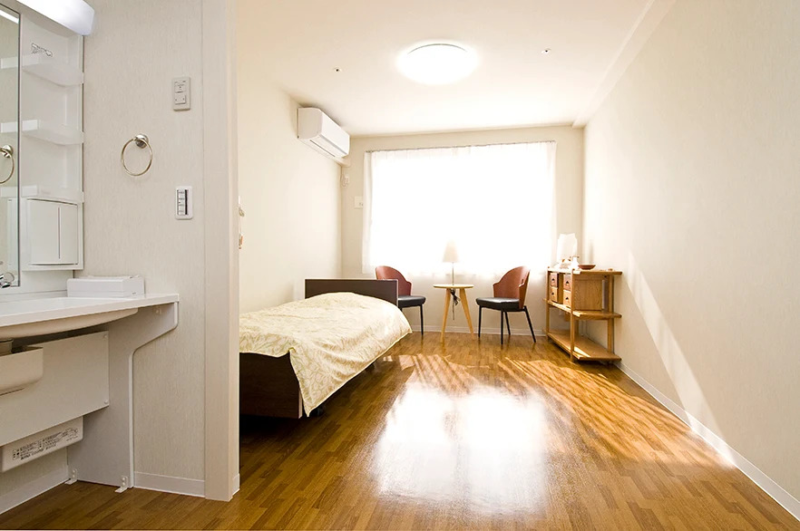 相鉄本線「さがみ野」駅よりアクセスが良好な立地に施設はございます。お部屋は1人部屋以外にも2人部屋のご用意がありますので、ご夫婦やご兄弟での入居も可能です。全47室ある居室内はバリアフリー設計で、手すりが設置されているなど安全性に配慮された空間となっています。ナースコールはもちろんのこと、介護専用電動ベッド、車いす対応トイレ、洗面台、エアコンなどの設備が完備されています。共用部の食堂は食事のほか機能訓練にも活用されているなど、ご入居者様どうしの憩いの場としても活用されています。屋上テラスは景観が良く、浴室にはお身体状態に合わせて入浴が可能な機械浴槽も完備されていますので、どなたでも入浴をご堪能いただけます。