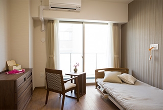 ひらけた駐車場と玄関口、マンションのようなお洒落な外観の地上4階建ての施設です。31室ある介護型居室は18㎡以上の広めの空間を確保。全てのお部屋がプライバシーに配慮された完全個室となっており、居室内にはトイレや介護ベッド、ナースコールなどが標準装備されています。47室の自立型居室は38㎡以上と広々とした空間で、1LDKから2LDKとタイプも様々ご用意しておりますので、お1人でのご入居はもちろん、ご夫婦揃ってご入居いただくことも可能です。居室内にはトイレ、キッチン、浴室が完備されていますので快適にお過ごしいただけます。