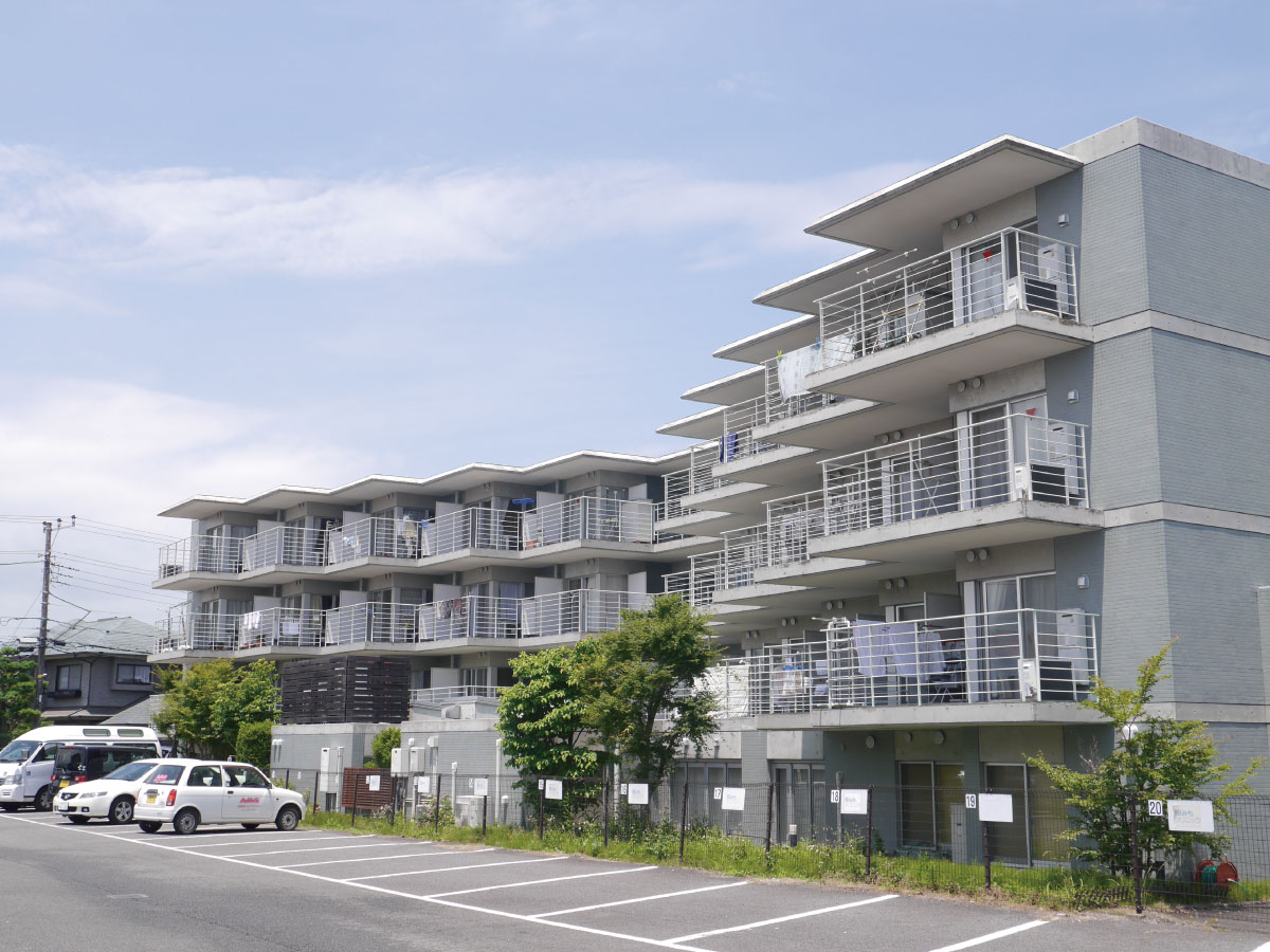 高い建物が無い開放感あふれるエリアに建つ、4階建ての住宅型有料老人ホームです。30室ある居室はすべて南向きで、広々とした専用バルコニーに面しています。室内にはIH式ミニキッチンとトイレが備わっていますので、ご自分のペースで気兼ねなく一人時間を満喫できます。緊急通報装置でスタッフと繋がれる安心感と共に、自由な生活を送ることができます。