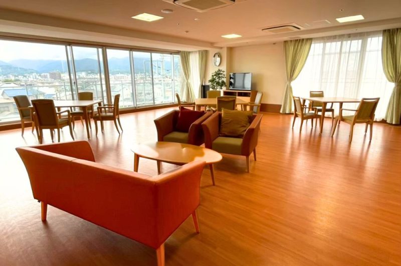 総居室数69室のサービス付き高齢者向け住宅です。4階建ての建物は、自立の方から要介護の方までどなたにとっても生活し易いバリアフリー設計で、玄関からエントランスホール、お部屋に至るまで段差がなく、廊下も広々と幅が取られています。自由に使える共用部には、玄関脇の地域交流スペース(談話室)や、ソファセットとダイニングセットが置かれたリビングダイニングがございます。訪問されるご家族との歓談、スタッフや他の居住者様との交流など、憩いの場としてご利用ください。共用浴室は大浴場タイプで、寝たままの姿勢で安全に入浴できるストレッチャー浴槽を備えています。
