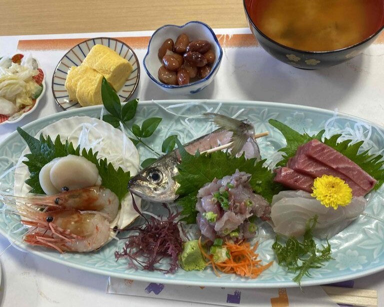 安心安全をモットーに提供される、美味しいお食事もおすすめポイントのひとつです。和洋中さまざまなジャンルのお料理をお楽しみいただけるほか、海の近くならではの新鮮なお刺身盛り合わせなど、食べる意欲がわくメニュー展開です。