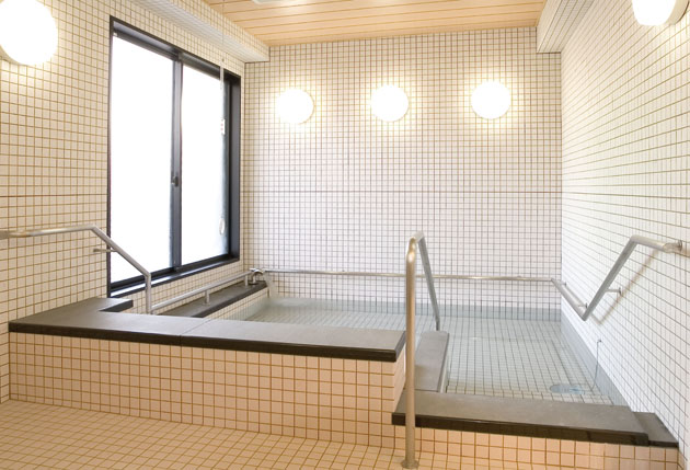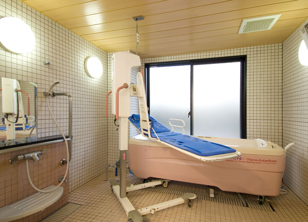 優しい色合いのタイルがアクセントの、シャープでモダンな施設です。近隣には緑豊かな公園が点在しており、のんびりとお散歩が楽しめる住宅街に位置しています。1階のダイニングルームはテラス付きの中庭に面しており、明るく開放感があります。屋上にもテラスがあり、こちらからは近隣の街並みを眺めることができます。日々の疲れを癒す入浴設備も整っています。広々とした共同浴室とのんびりできる個浴室のほか、介助が必要な方も安心して入浴いただける機械浴室も完備しています。