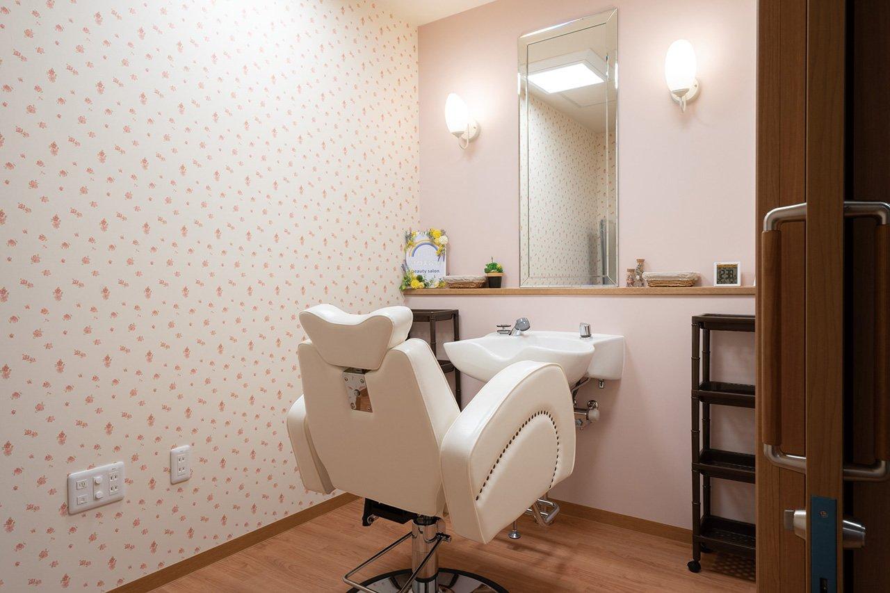 各フロアには機能訓練室を兼ねたリビングダイニングルームがあり、温かい日差しを受けながらお食事や歓談を楽しめるほか、レクリエーションを交えたリハビリを行っています。館内には理美容室も備えられており、身だしなみを整えたいときは気軽にご利用いただける環境として提供することで、体と心に余裕を持った毎日をお過ごしいただけます。