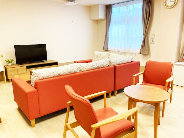 明るい色調の外壁が印象的な、3階建てのサービス付き高齢者向け住宅です。完全個室の居室は48室あり、自室でのプライベートタイムを満喫しつつ、共有部分ではスタッフや他の居住者様と交流できます。リビングスペースにはソファセットがありますので、ゆったりと寛ぎながら歓談やテレビ観賞をお楽しみいただけます。