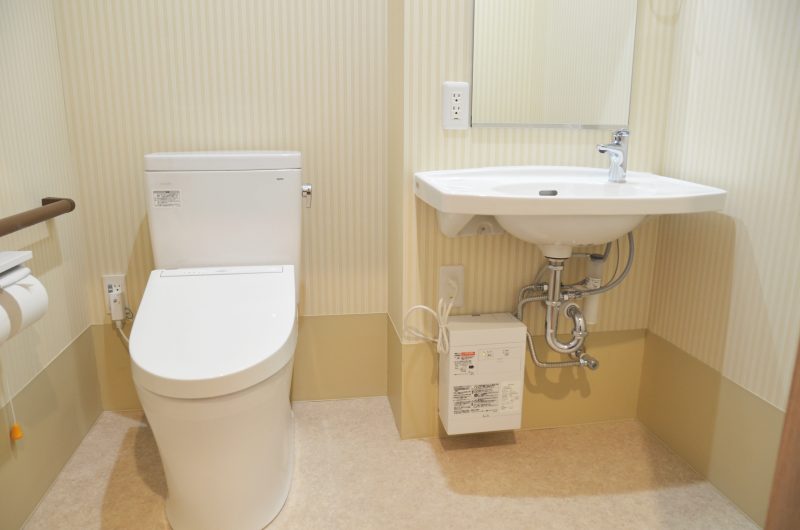 58室の居室は、トイレ・洗面台ユニットを完備した完全個室です。スタッフと繋がれるナースコールが配備されている安心安全なお部屋で、自分時間をお楽しみください。