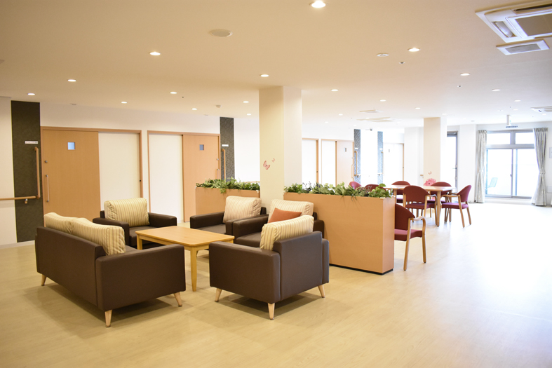 こちらの施設は看護師が常勤しているサービス付き高齢者向け住宅で、自由度の高い生活に安心と安全がプラスされた環境です。全60室ある居室は18.45㎡~19.37㎡の広さがあり、居室内には安全対策としてALSOKセキュリティのほか、緊急通報装置が完備されています。その他にも、洗浄機能付きトイレ、車いす対応の洗面台、エアコン、カーテン、収納などの設備が揃っています。共用部スペースのリビングダイニングは、明るく開放的な雰囲気で食事以外にも体操、イベント、レクリエーションなども開催されています。浴室は個浴室の他、お身体の状態に合わせて機械浴槽での入浴も可能です。