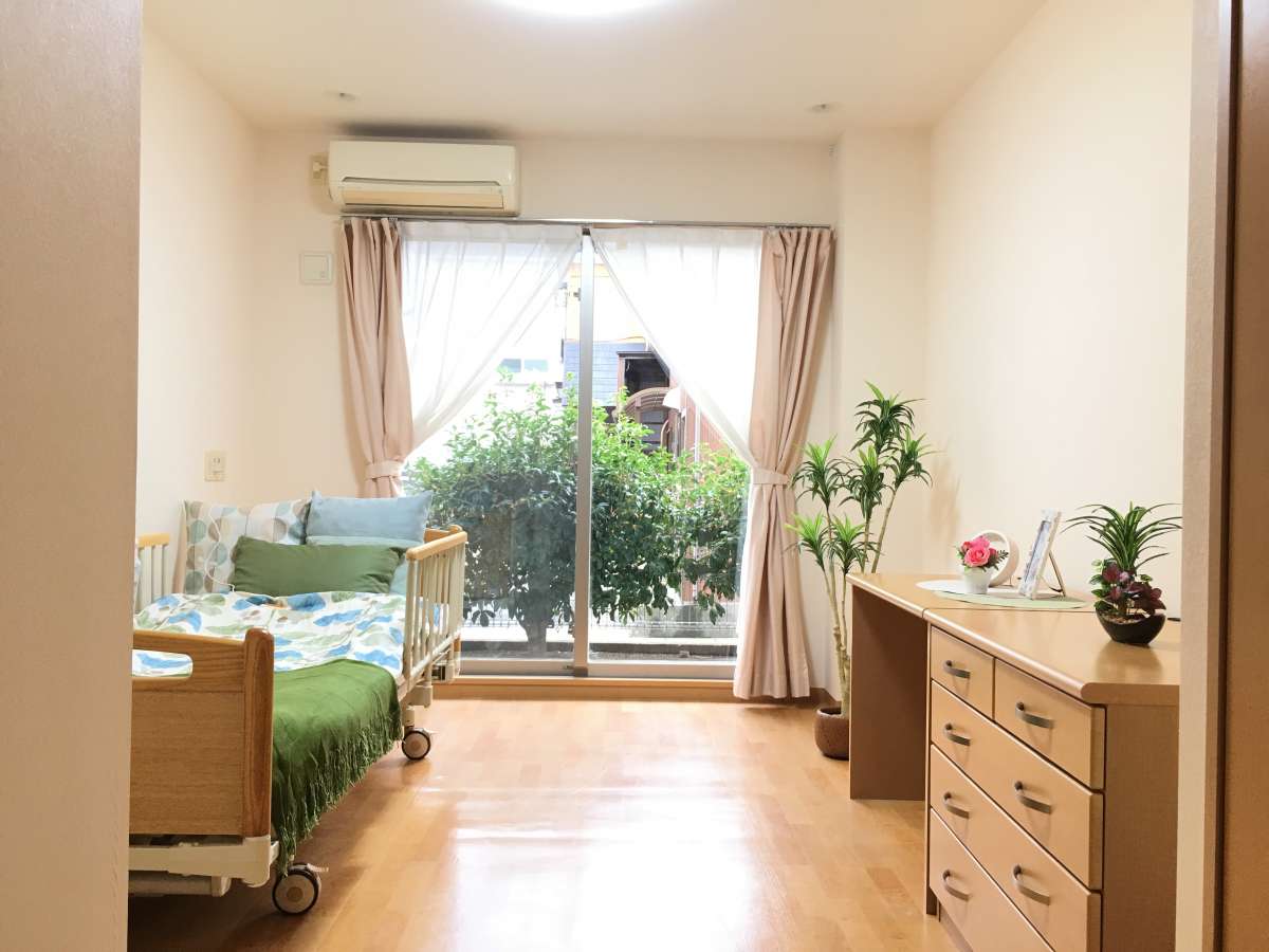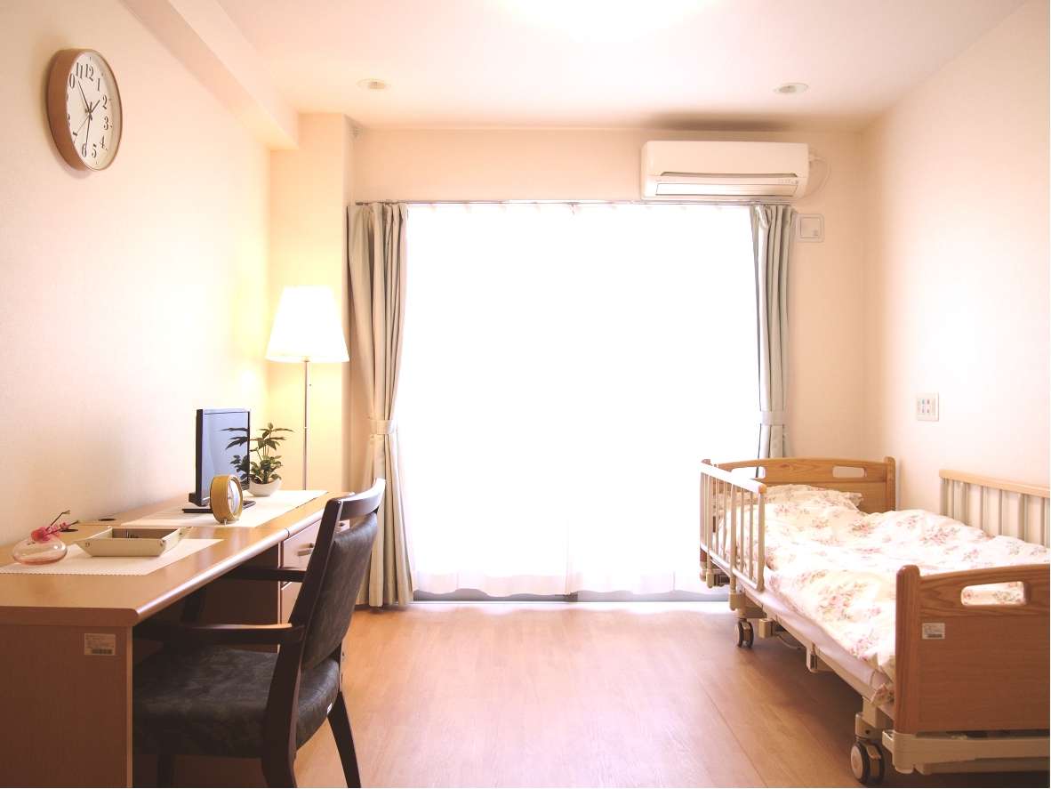 地上3階建て、居室数は全37室のご用意がある施設です。居室はすべて完全個室で、広さは13.25㎡~18.68㎡あり介護ベッド(寝具付き)、車いす対応の洗面台、車いす対応で緊急コールが設置された温水洗浄機能付のトイレ、カーテン、チェスト、クローゼット、照明、ナースコールなどの設備が完備されていますので、不自由なく安心してお過ごしいただけます。共有スペースには食事やテレビを見ながら寛げるリビングダイニング、談笑などにも活用できる和室、お身体状態に合わせて入浴できる浴室などの設備がございます。
