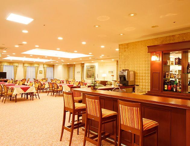 地上9階建ての施設は、ホテルの様な外観です。館内には気品のある家具を配置したラウンジや図書室・大浴場が完備されており、ホテルライクで寛いだ生活を送ることができます。