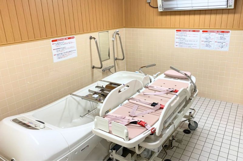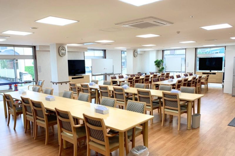 戸建住宅や低層アパートが建ち並ぶ住宅街に建つ、3階建ての介護付き有料老人ホームです。要介護認定を受けた方々がスムーズに生活できるバリアフリー設計で、ストレッチャー対応のエレベーターが設置されています。食事やレクリエーションに使用される食堂は、たくさんの大きな窓から自然光が差し込む明るい空間です。ソファセットが置かれた談話コーナーなど、ゆっくりと寛げる共有スペースが用意されています。共用浴室には大浴場と機械浴室があり、お身体の状態に合わせてご使用いただけます。