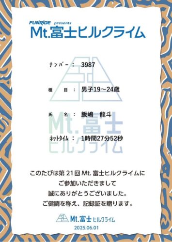 学生時代に出場した2回ともブロンズ(1時間半切り)を目標にしてきましたが及ばず、、、
