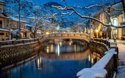 大正ロマンあふれる木造建築が並ぶ街並みは、まるで昔に戻ったような世界らしいです!雪景色の中を湯けむりが漂う光景は息をのむ美しさだそうです!