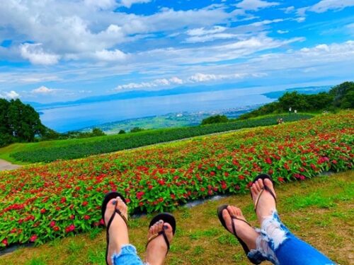 ロープウェイでの空中散歩を楽しみ、山頂に降り立つと、圧倒的なスケールと迫力を誇る琵琶湖を一望できます。