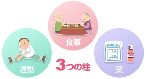 代表的な薬剤には、インスリンの効きを高めるメトホルミン(ビグアナイド薬)、食後の血糖上昇を防ぐDPP-4阻害薬やSGLT2阻害薬、注射タイプのGLP-1受容体作動薬などがあります。近年は、SGLT2阻害薬やGLP-1作動薬が体重管理や心血管疾患の予防にも有効で、高齢者にも適した治療選択肢となっています。