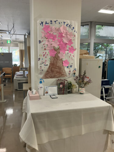 24時間看護師が常駐している施設ですが、日中帯は老人ホームの看護師さんが対応をしてくださり、夜間は1階クリニックの看護師さんが入居者様を見てくださっております。 それ以外の特典として入居者様は年2回健康診断が無料で受けることができたり、1階から5階全てのフロアに機能訓練室があります。 STさんが常駐している施設ではないのでリハビリをとにかく手厚く行ってくださるということではありませんが、職員の介護士様や看護師様と空いた時間や朝食前にリハビリを行っていらっしゃるとのことです。 ご入居される方は、病院が下についているという安心感があり、選ばれている方が多い為、入居者様は病状が重めな方が多いためレクレーションなどは頻繁に行っている訳ではないとのことです。 しかし、月に1度必ずイベントを行っている介護施設です。