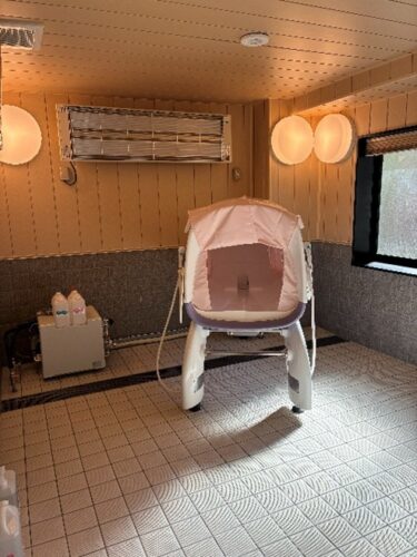ストレッチャーに寝ころびそのまま入り自動で洗浄してくれます。